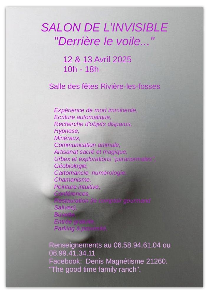 Les 12 et 13 Avril, se déroulera le premier salon lié à l'invisible à Rivière-les-fosses, à la salle des fêtes.
